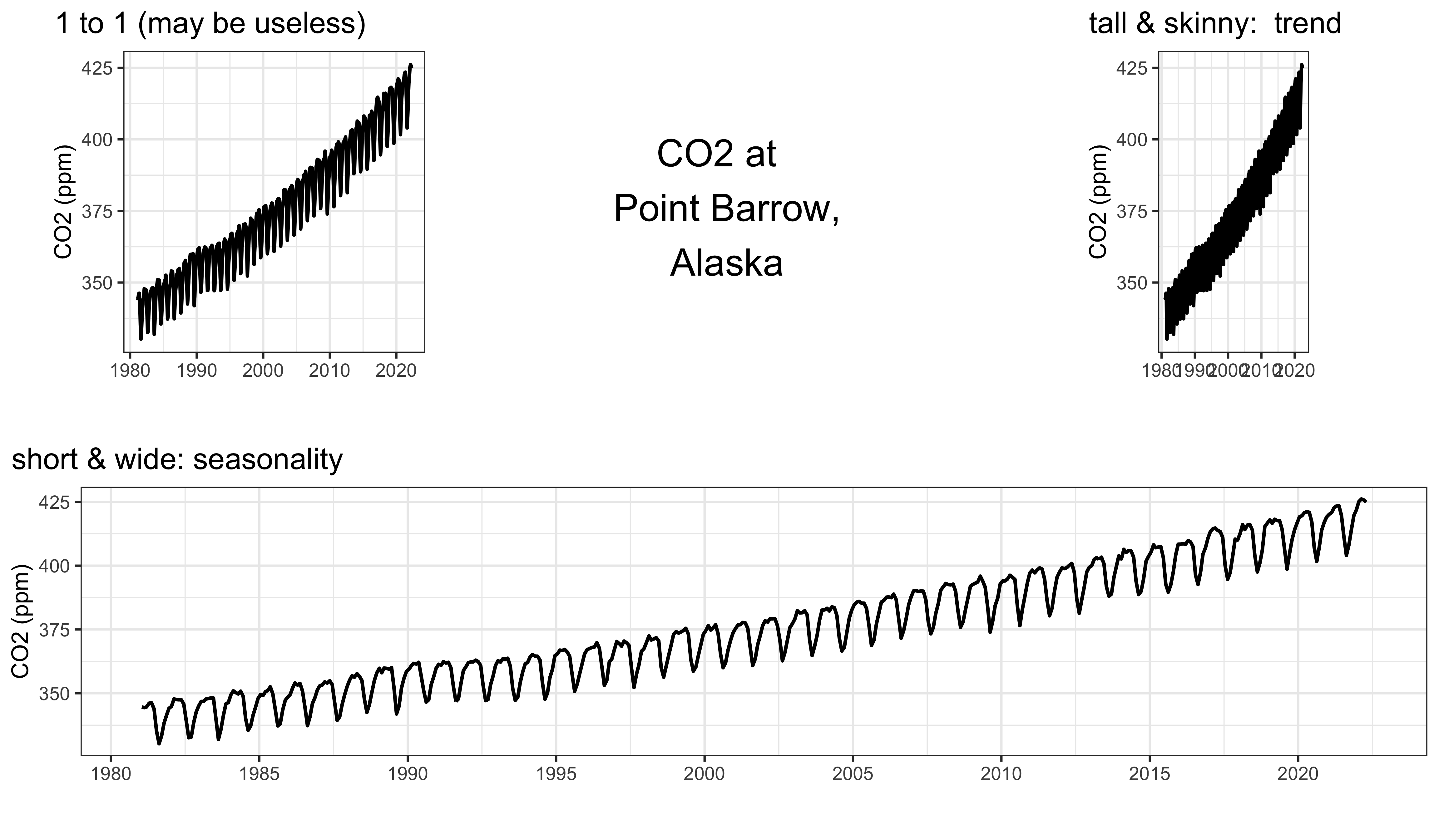 - Plotting conventions: connect the dots; aspect ratio, landscape or portrait