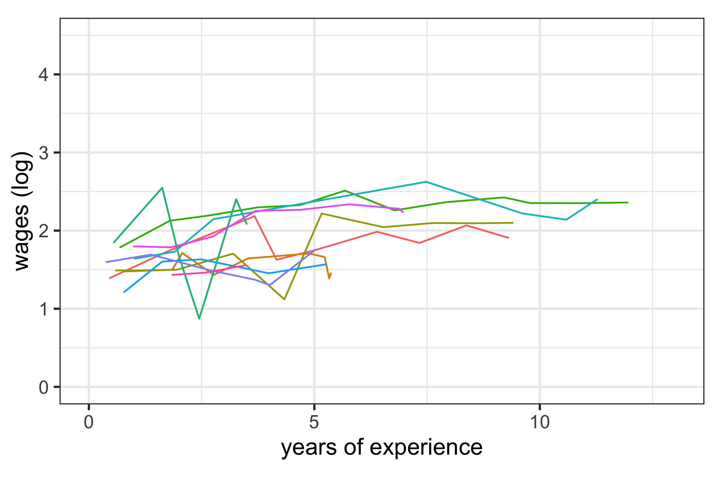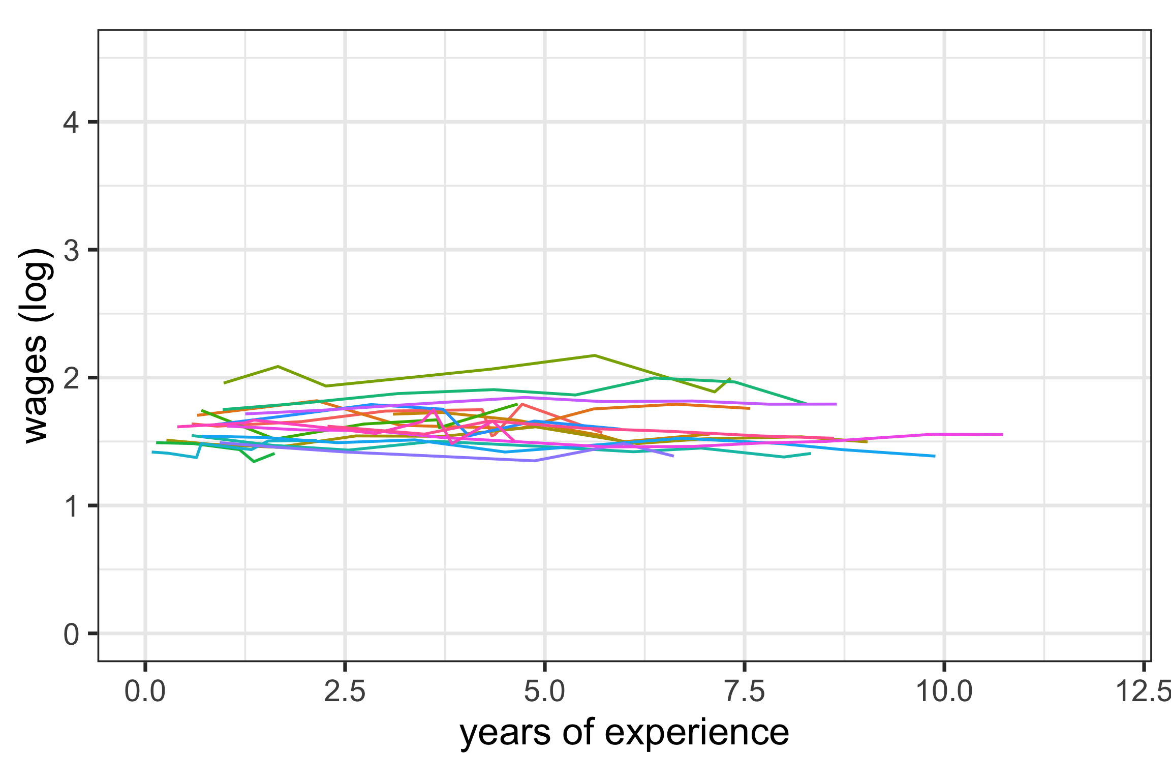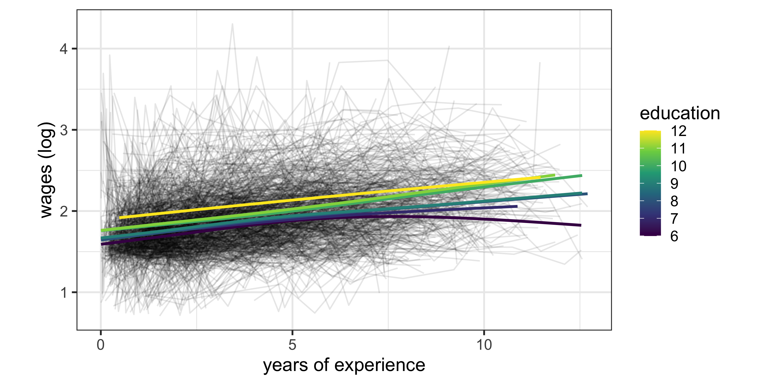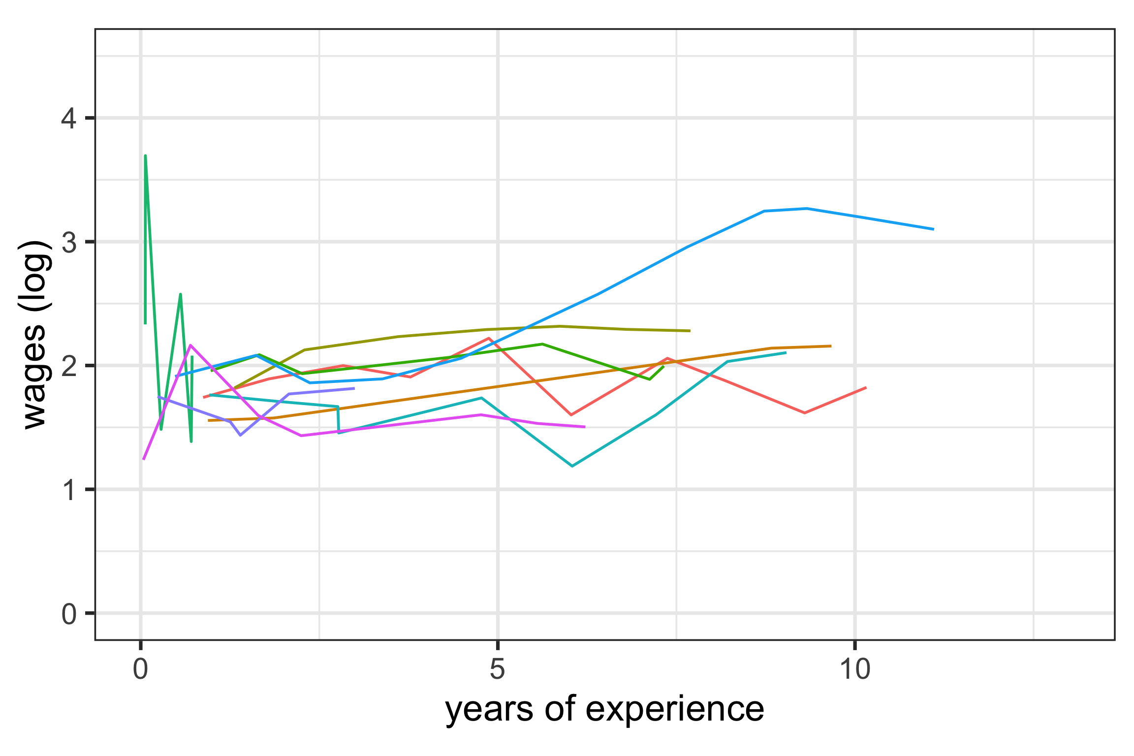 geom_line(aes(x = xp, y = ln_wages, group = id), alpha=0.1) +